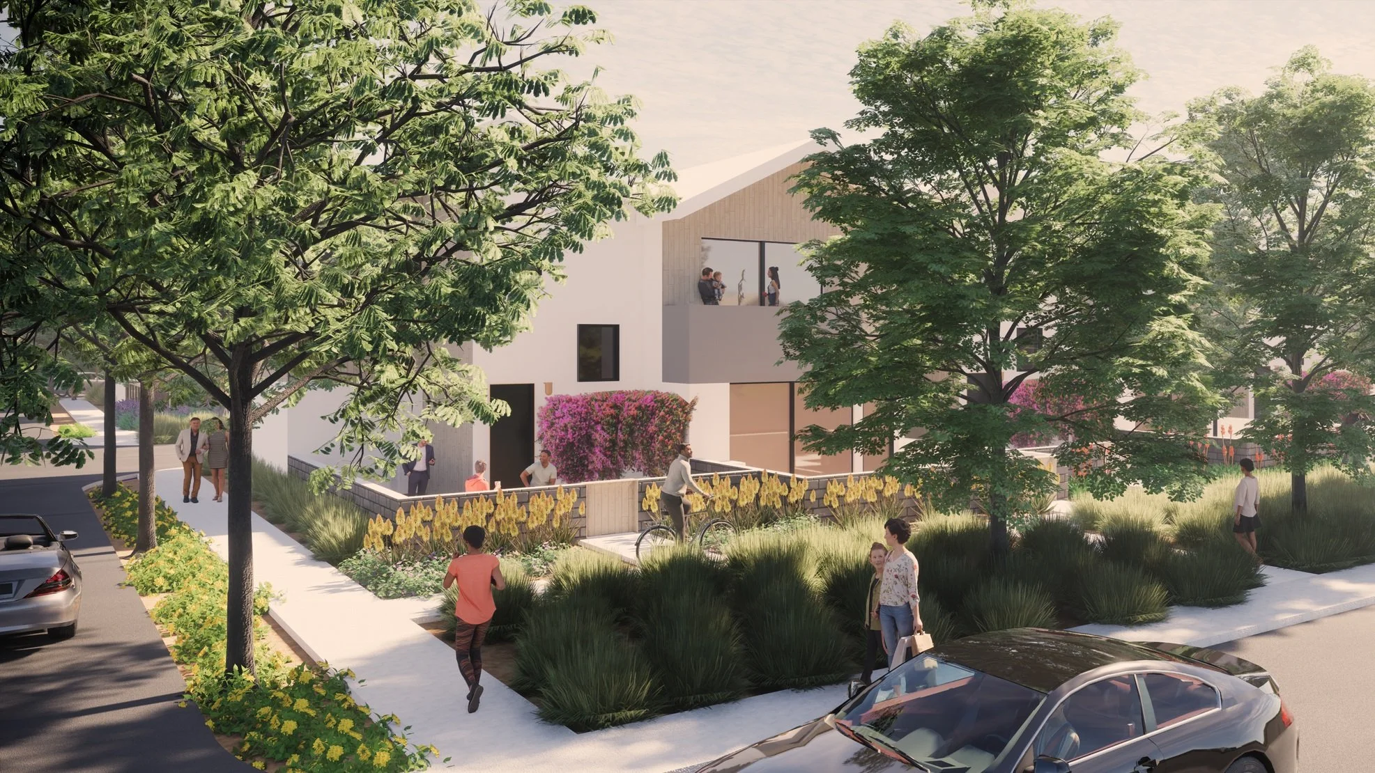 C3 is a ground-up multi-family development in the heart of Midtown Phoenix. Evolve and its partners successfully rezoned a vacant infill land parcel to comply with the Walkable Urban Code and to accommodate a 22-unit, 3-story community which will complement and enhance the surrounding urban environment. The unit and hardscape design focus on street engagement to prioritize the pedestrian experience, and critical shade is provided along the street frontage to maximize walkability.